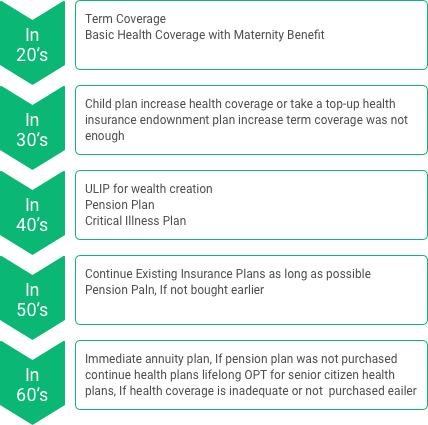 So, Manisha in her 40’s can choose to buy an endowment Plan for wealth creation along with insurance protection, buy a pension plan for her retirement as well as choose a Critical Illness Plan.